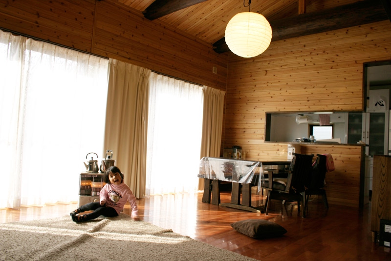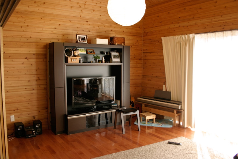 造りとしても 広いリビングそして高い天井 壁と天井一面の本物のスギ板