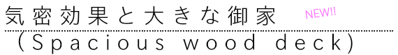 ウッドデッキ。リビングから直接出入りできる大きなデッキは