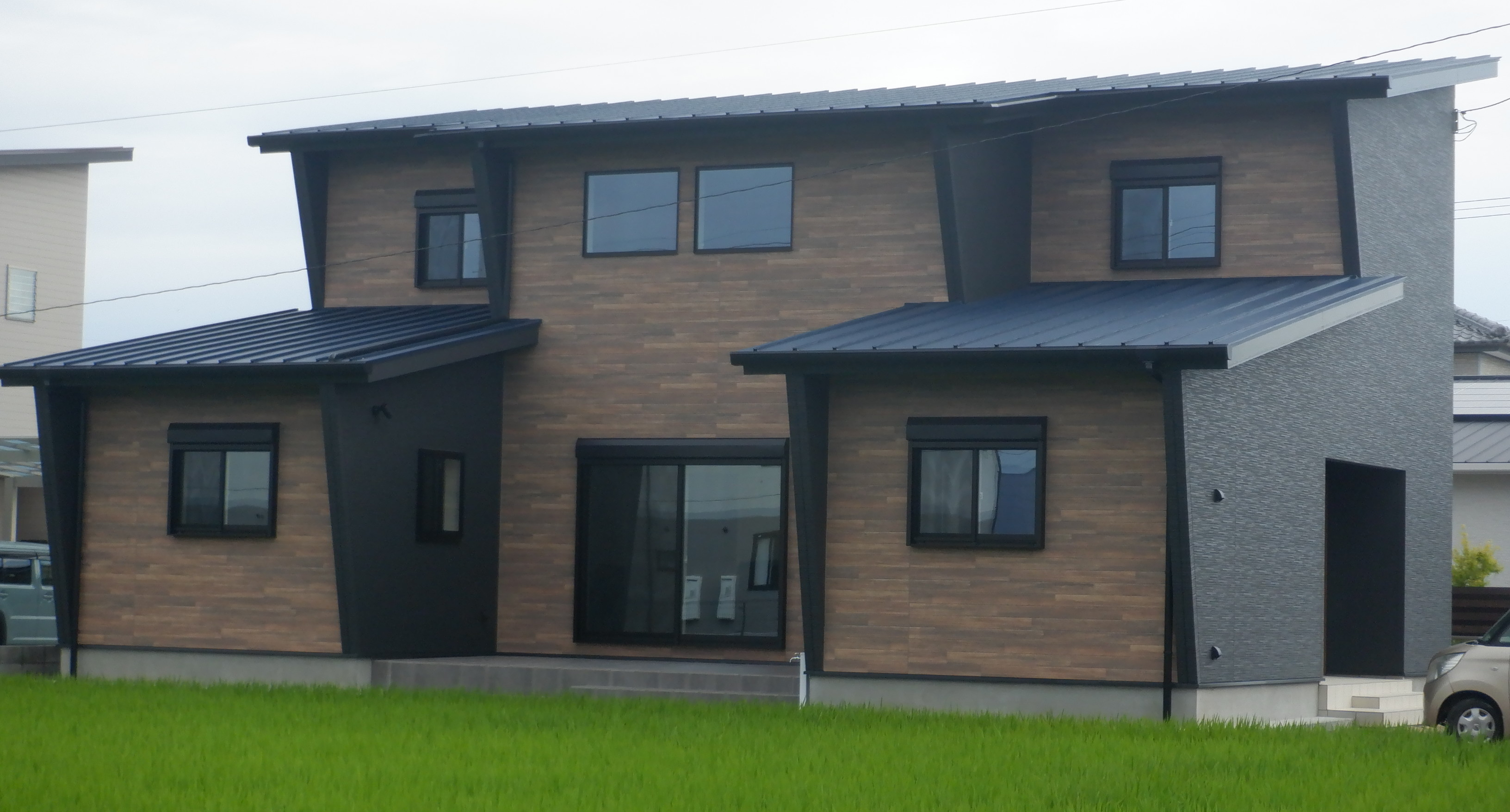南面に広庭を得ることで大きなテラスを設け、リビングと繋げることによって一層、リビングの解放感と楽しみを掴むことのできる造り。シューズクロークとガレージを完備。
