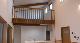 高台にある家は眺めが良く爽快感を感じる、屋根の勾配を大きくとり、ロフトの天井高を確保。