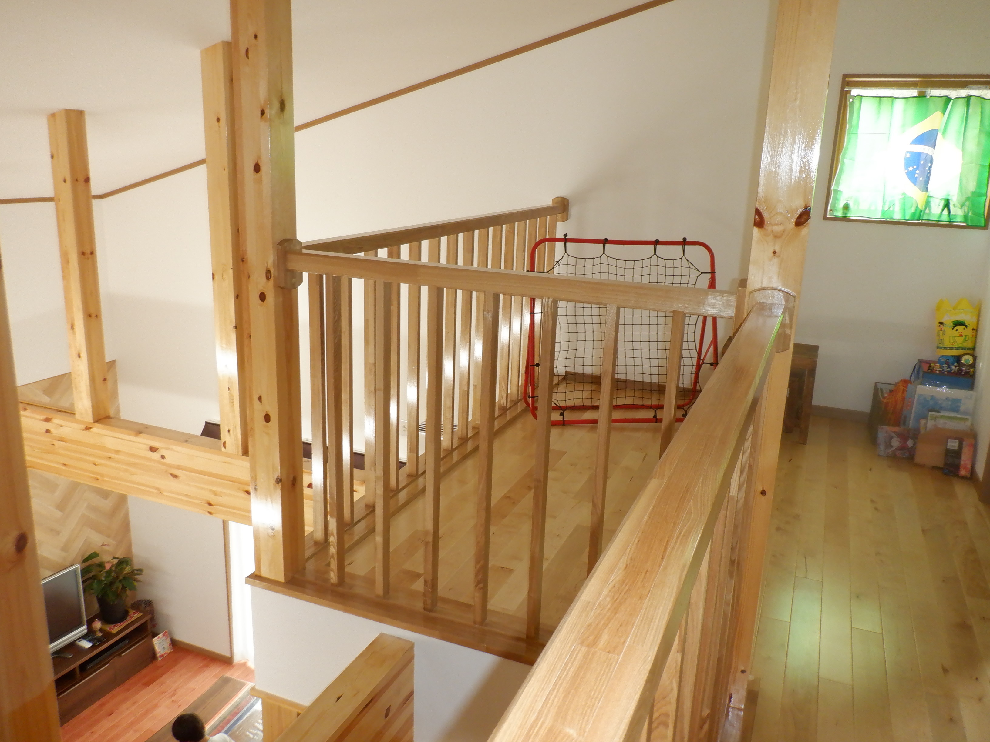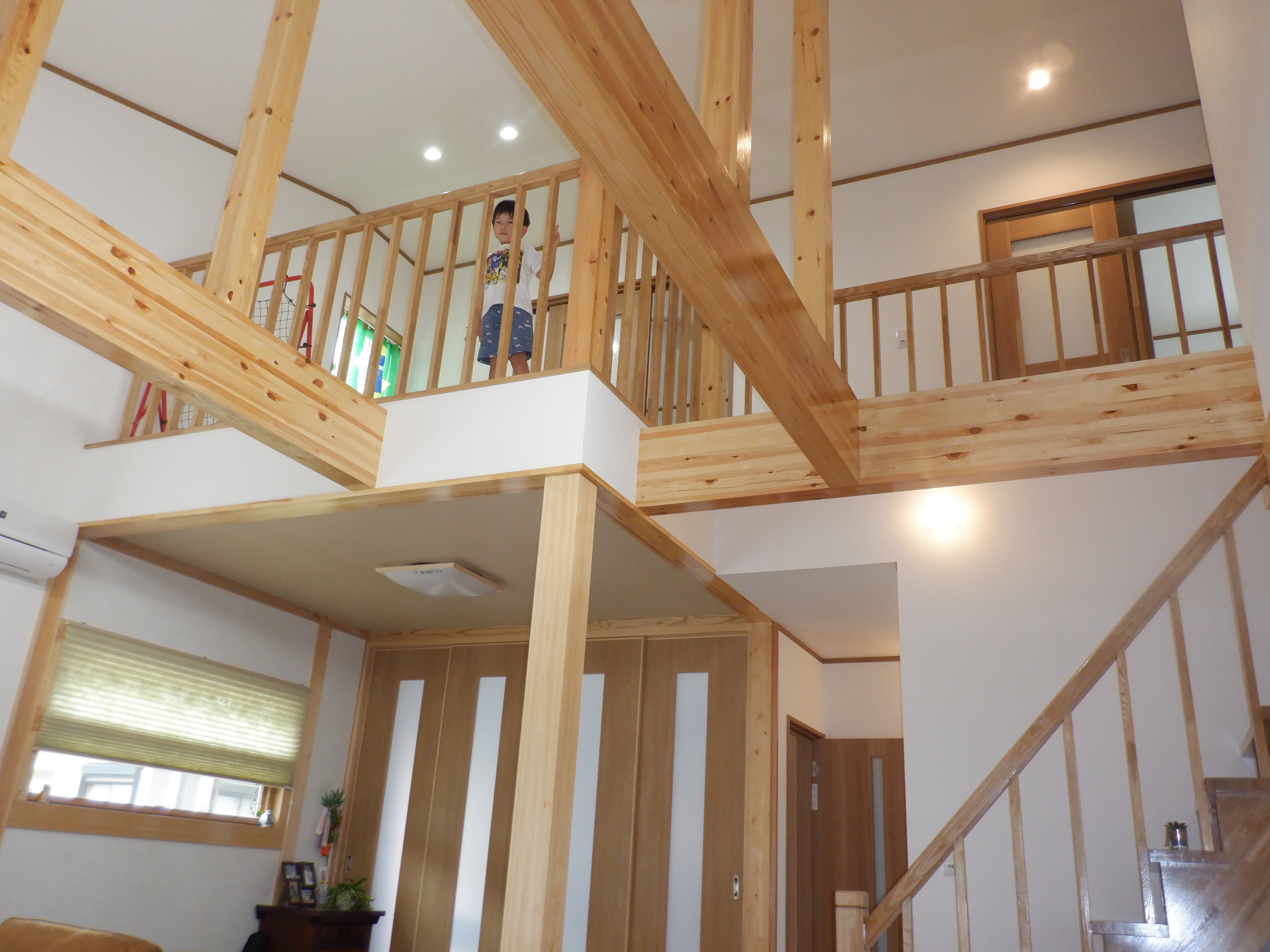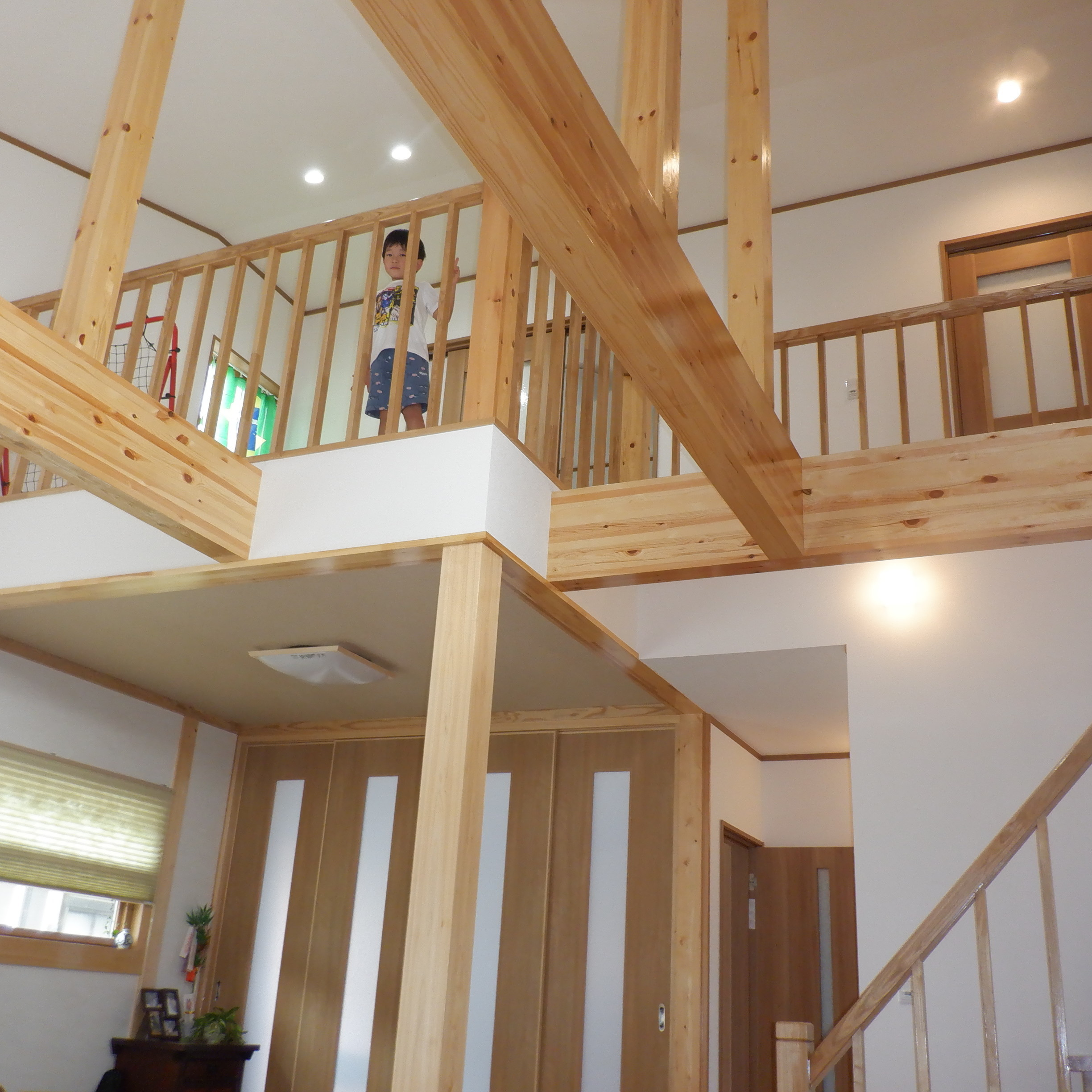 吹き抜けから覗ける子供部屋と遊び場となる