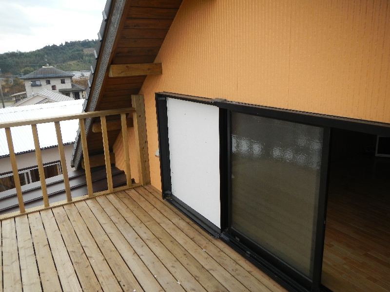 屋根の勾配を大きくとり、ロフトの天井高を確保。また低地から上がってくる風をとらえるためにロフト東側には窓を配置しました。またその窓の外側にはテラスを配置。簡単な食事も取れるほどのスペースがあり、夏場などには最適です。またこの家にはお風呂が2つあります。一つは夏などに簡易に使うボイラー用。もう一つは冬場に使う焚き物用。冬用のお風呂外側には足湯兼露天風呂が出来るように設計されているので、ゆとりのある生活が出来ます。