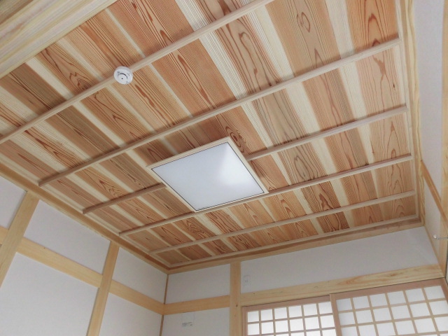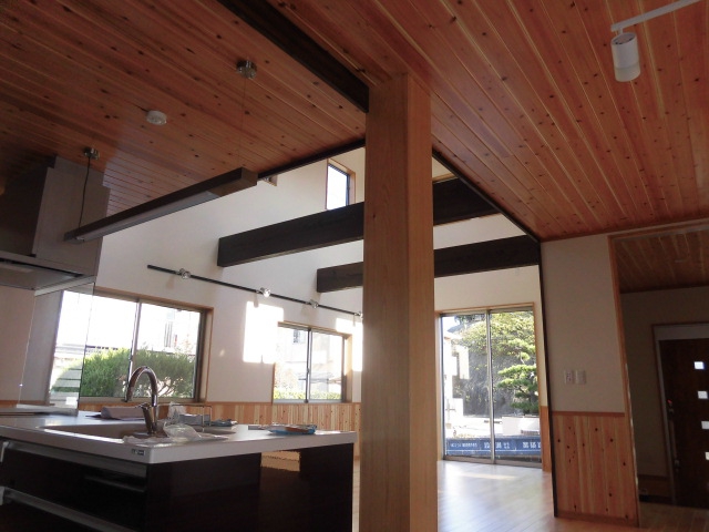 杉の腰板・天井一面にも杉材をふんだんに使用。