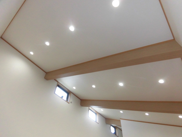 リビングの梁は登梁とし天井高く解放感のある空間とし続き間として
