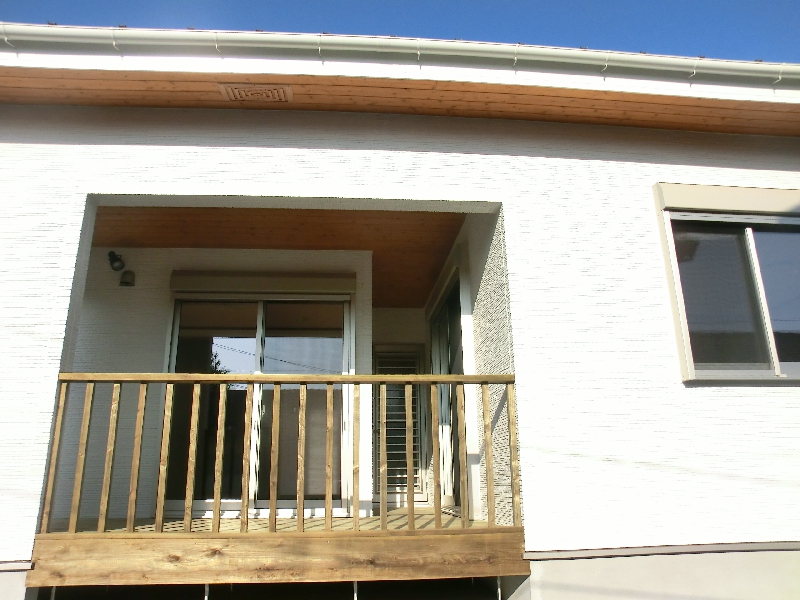 広い敷地に目に留まるのは白を基調とした外壁に大きなウッドデッキ。