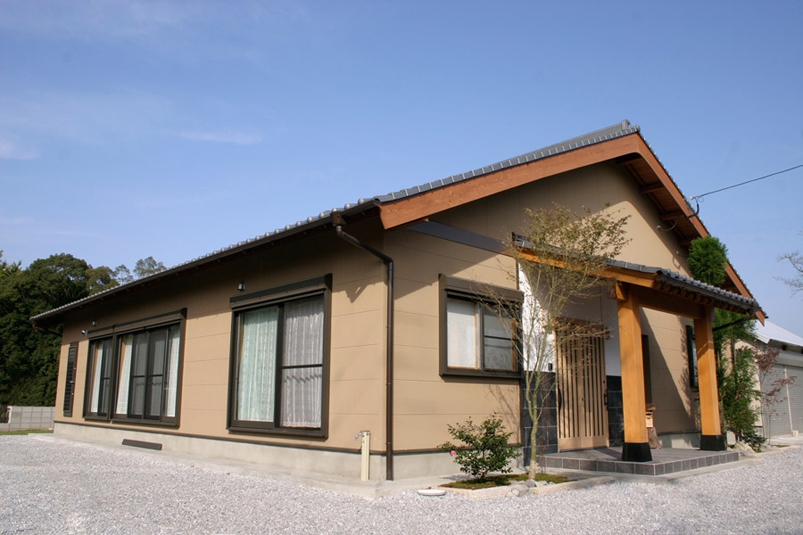 この家には、玄関の脇にモニュメントとして大きな檜がある。その荒々しいまでの美しさは、この玄関から向こうは別の世界ですよと語っている気がする。住人も玄関をまたぐとき、この檜のおかげで、さぞ凛となるんじゃなかろうか。玄関は妻入り。単純になりがちな玄関にこの大檜があることにより、家全体が引き締まって見える。
